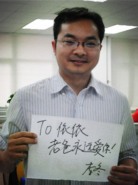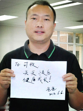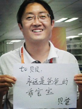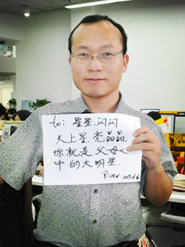 我也很想念我的爸爸,每當我想爸爸時卻又見不到爸爸不能像以前那樣抱著爸爸對爸爸撒嬌我只覺日月無光,但我堅信父子之間一定會心靈相通,超越距離,超越時空,爸爸的心永遠和我們的心連在一起!