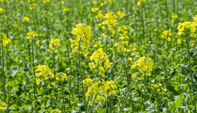 四川省眉山市東坡區(qū)修文鎮(zhèn)三寶村,黃綠交織的油菜花次第開放。侯建明 攝